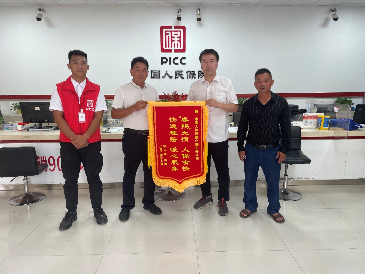 “沒想到理賠會這么快。”其中一位收到賠款的養殖戶裴元廷感慨道,“早上剛報完案,下午錢就到賬了,人保財險的服務太給力了。”當天下午,客戶就將充滿感謝與肯定的錦旗送到了人保財險北海市分公司工作人員的手上。