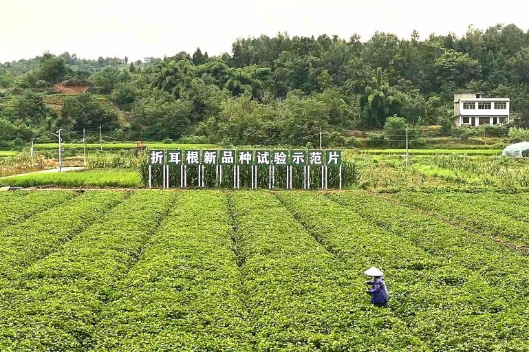當前正值初秋,在江油市青蓮鎮蘇溪村的田野上,成片的折耳根進入生長旺盛期,好似一幅綠色地毯在田間地頭延伸開來。
