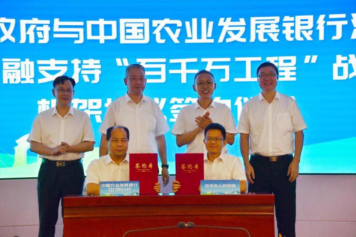 根據協議內容,雙方將本著“相互支持、合作共贏”原則,錨定開平市全力建設省“百千萬工程”典型縣,爭當廣東省縣域高質量發展排頭兵的建設目標,加大對開平市糧食安全和重要農產品穩產保供、農業產業現代化發展、生態文明和綠色發展、全面推進鄉村振興等重點領域合作力度,著力解決企業發展和項目建設融資難題。