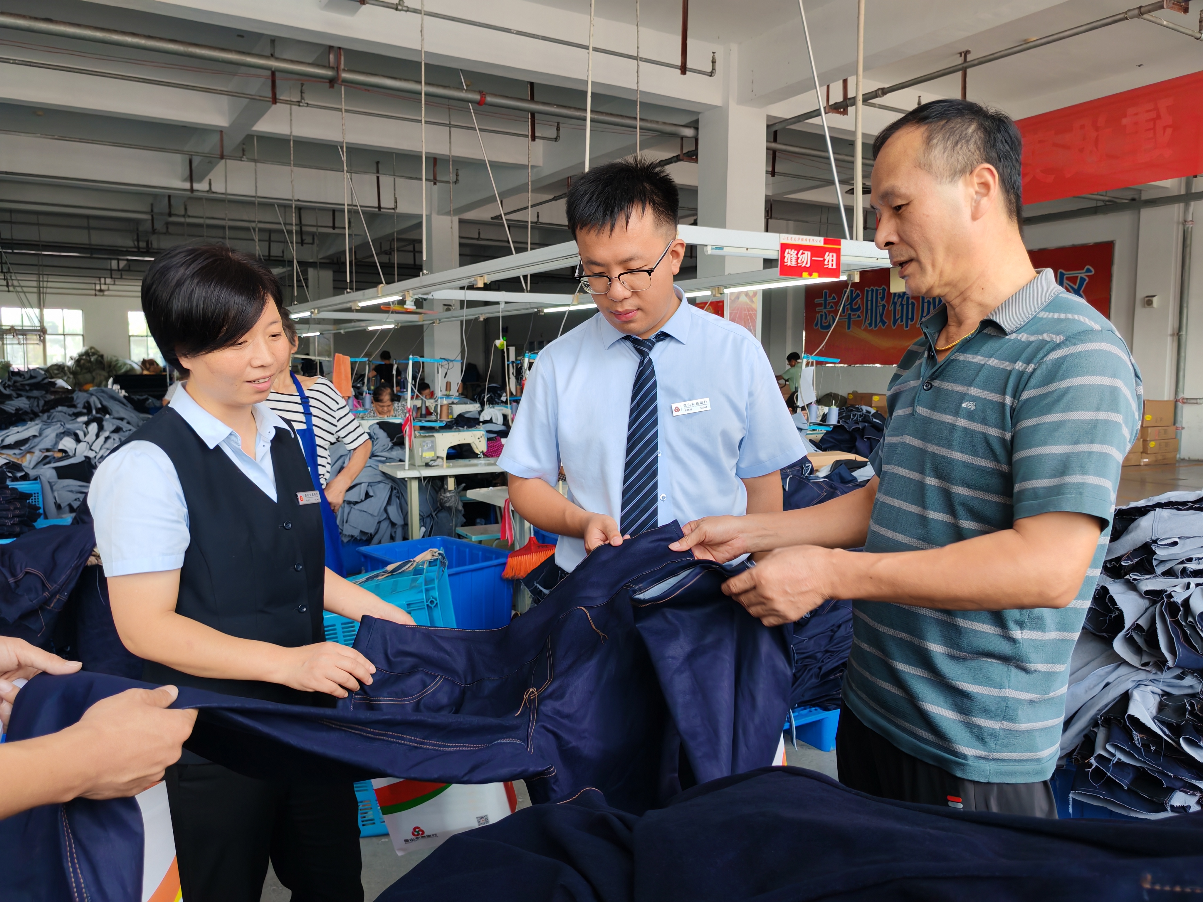 微山農商銀行客戶經理實地走訪服裝生產企業了解其生產經營情況 微山農商銀行供圖