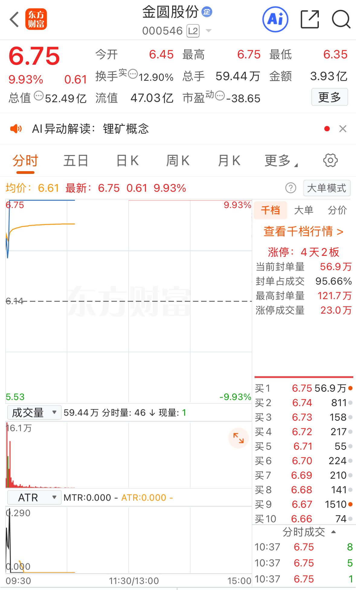 鋰礦概念指數中,金圓股份開盤直線拉漲停,斬獲“4天2板”,大中礦業、國城礦業雙雙漲超8%;雅化集團、天齊鋰業等多只鋰電產業鏈個股跟漲。