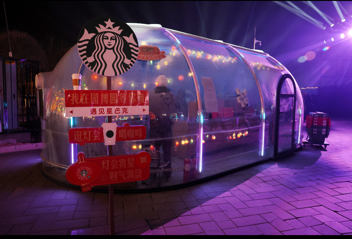本報訊 (記者矯月 見習記者梁傲男)2月4日記者獲悉,春節假期期間,星巴克“星空”主題快閃店亮相北京園博園燈會現場。星巴克方面對記者表示,這一主題快閃店的亮相將持續至2月底。