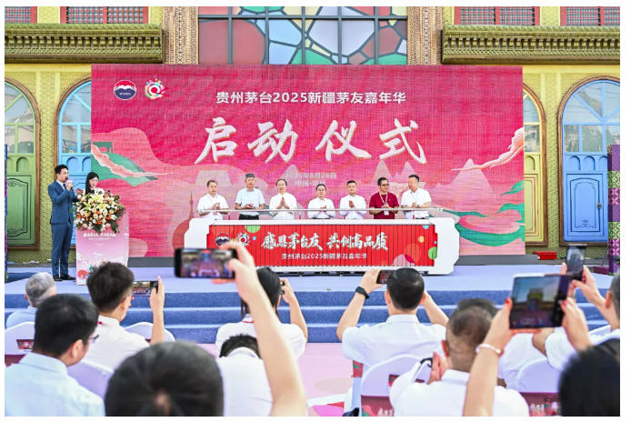 隨后,孫勁峰、張德芹等領導嘉賓共同上臺啟動裝置,也正式揭開了貴州茅臺2025新疆茅友嘉年華序幕。