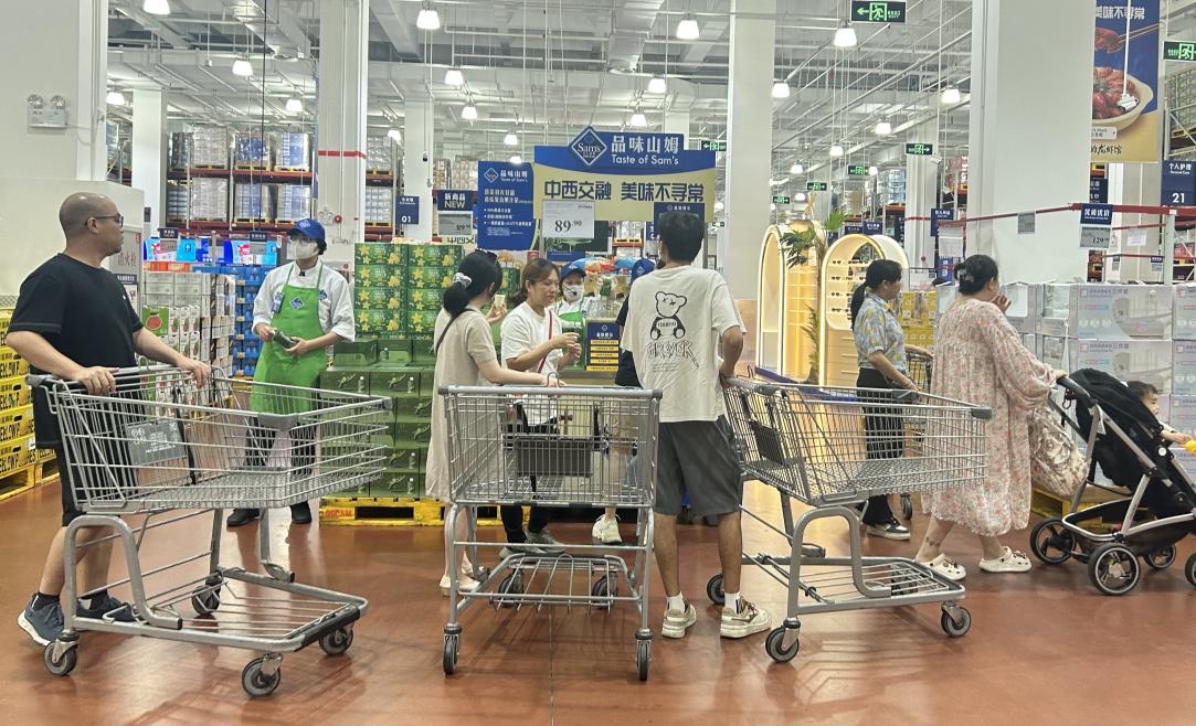(圖為:消費者在山姆購買喜茶瓶裝產(chǎn)品)