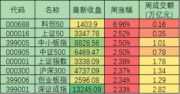 表:本周滬深兩市重要指數(shù)表現(xiàn)一覽