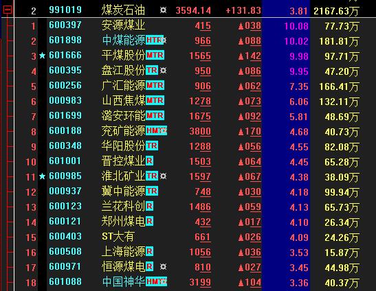 熱點二:煤炭石油板塊崛起漲近4%