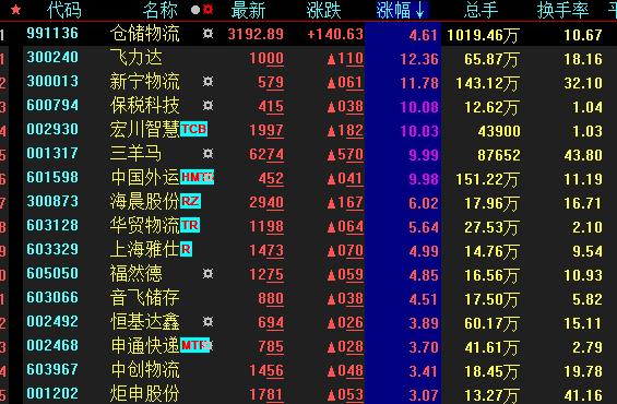 熱點一:倉儲物流板塊飆升近5%4股集體漲停