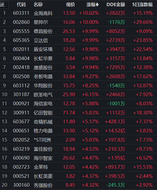 家用電器行業領漲