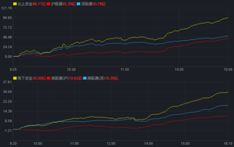 北向資金方面,周五北向資金凈買入96.17億元,算上周四120.33億元的凈買入,兩個交易日北向資金合計凈買入216.5億元。