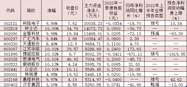 表:7月18日受到5000萬元以上主力資金青睞的充電樁概念股