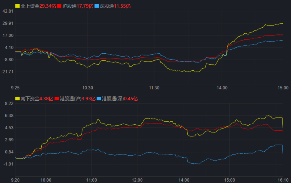今日A股三大股指早盤震蕩紅盤,盤午后繼續震蕩走高,滬指收復3200點整數關口,三大指數均漲超1%,深市略強。截至收盤,上證指數漲1.19%報3227.03點,深證成指漲1.69%報12269.21點,創業板指漲1.62%報2683.60點;兩市合計成交額達9954億元,北向資金凈買入29.34億元。總體來看,個股漲多跌少。