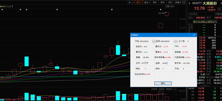 8月5日,大港股份漲9.97%,報13.79元。該股自8月1日以來,截至8月5日已連續5個交易日上漲,累計漲幅達51.37%,最近的4個交易日實現連續漲停。最新A股總市值達80.03億元,A股流通市值78.20億元。