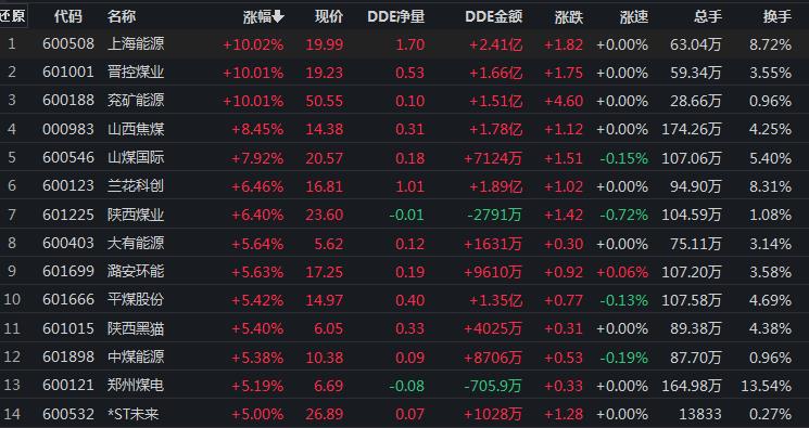 8月25日,煤炭行業(yè)漲幅居首達(dá)5.22%。其中,兗礦能源、上海能源、晉控煤業(yè)、*ST未來等4只煤炭股集體漲停。