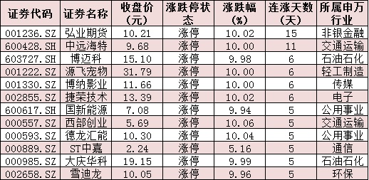表:今日漲停且連漲5日以上的個(gè)股情況: