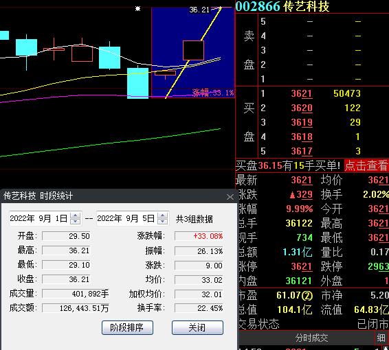 9月5日,熱門股傳藝科技再度漲停,截至收盤,報36.21元,實現3連板,累計漲幅達33.08%。