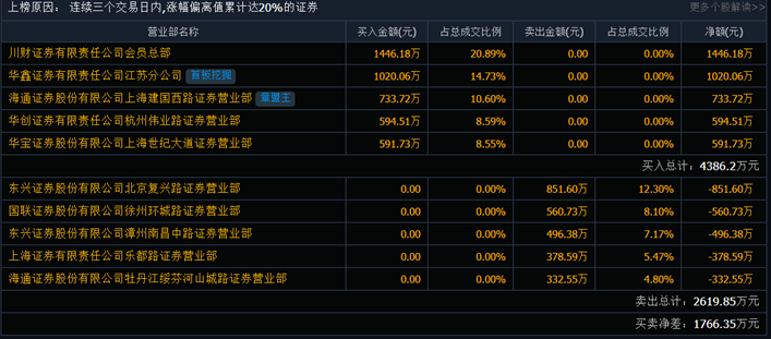 據(jù)同花順機(jī)構(gòu)成功率回測顯示,華鑫證券有限責(zé)任公司江蘇分公司買入1020.06萬,該營業(yè)部買入后,次日上漲概率50%,平均盈利0.58%。收益率最高的是持股1天后賣出,收益率0.58%,成功率50%。海通證券股份有限公司上海建國西路證券營業(yè)部買入733.72萬,該營業(yè)部買入后,次日上漲概率60%,平均盈利2.48%。收益率最高的是持股30天后賣出,收益率13.19%,成功率56%。