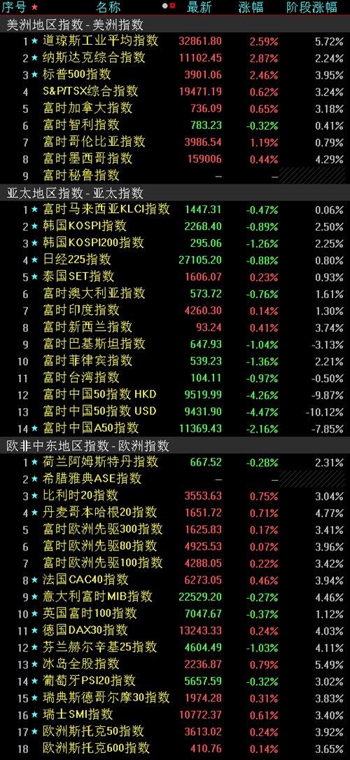 本周海外股市表現(xiàn)強(qiáng)勢(shì)。美股三大指數(shù)上漲,道指周漲5.72%;標(biāo)普500指數(shù)周漲3.95%;納指周漲2.24%。歐洲方面,三大股指周線上漲,英國(guó)富時(shí)100指數(shù)周累計(jì)漲1.12%,德國(guó)DAX30指數(shù)周累計(jì)漲4.03%,法國(guó)CAC40指數(shù)周累計(jì)漲3.94%。亞太股市,日經(jīng)225指數(shù)周累計(jì)漲0.80%;韓國(guó)KOSPI指數(shù)周累計(jì)漲2.50%。