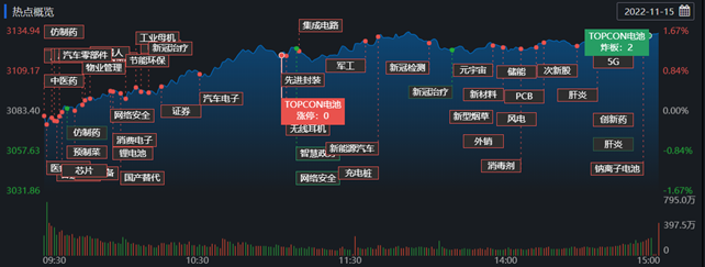 截至11月15日收盤,上證指數(shù)漲1.64%,收?qǐng)?bào)3134.08點(diǎn),深證成指漲2.14%,收?qǐng)?bào)11351.33點(diǎn),創(chuàng)業(yè)板指漲2.38%,收?qǐng)?bào)2431.73點(diǎn);滬深兩市合計(jì)成交額10586.1億元;北向資金凈買入81.54億元;總體來看,A股上漲個(gè)股為4172只,下跌個(gè)股598只。