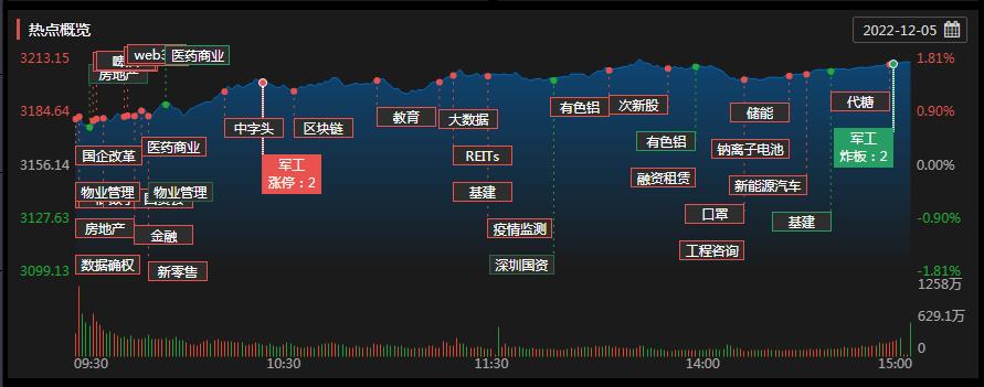 12月5日,建筑裝飾行業漲幅居首,達4.76%。其中,中國海誠、中國交建、甘咨詢、中國鐵建、中國中鐵、中公高科、深城交等7只概念股集體漲停。