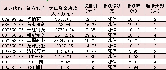 表:醫藥生物行業中10只漲停股情況: