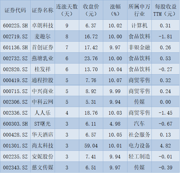 表:連續上漲3日且今日收盤漲停股一覽