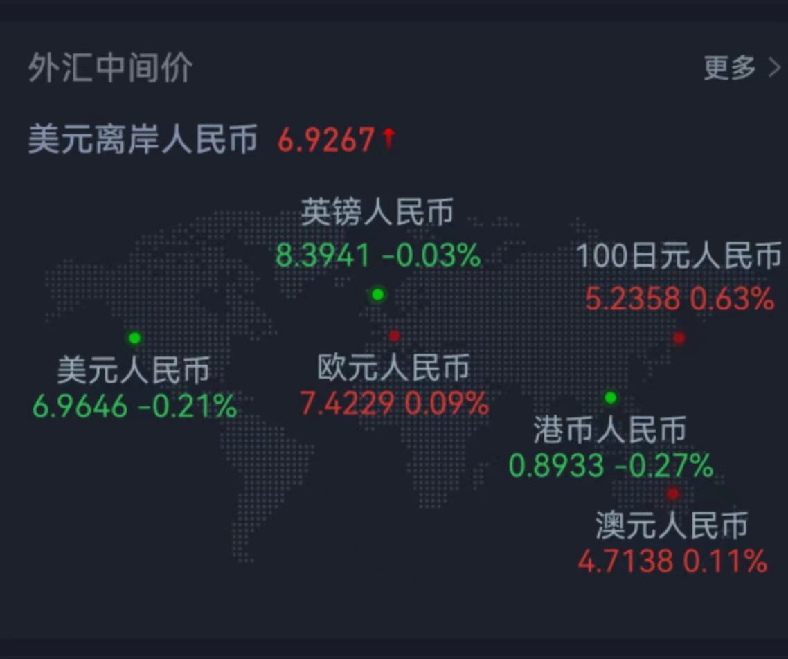 上周五在岸人民幣兌美元夜盤23:30收報6.9000。人民幣兌美元中間價報6.9646,調升147個基點,上周累計調升164個基點,全年累計調貶5889個基點。交易員稱,市場對疫情還是有擔憂的,短期情緒受抑制。