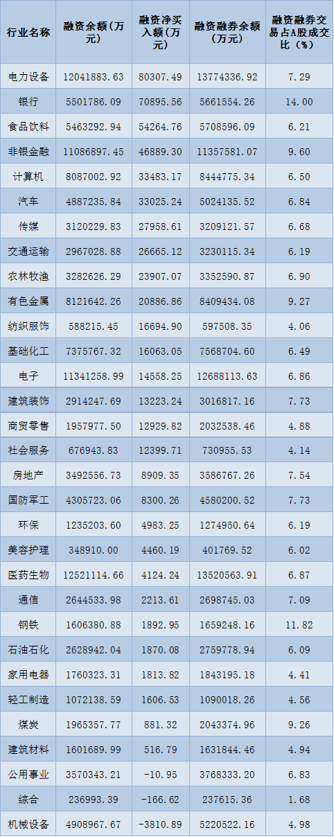 表:1月3日申萬一級行業兩融交易情況: