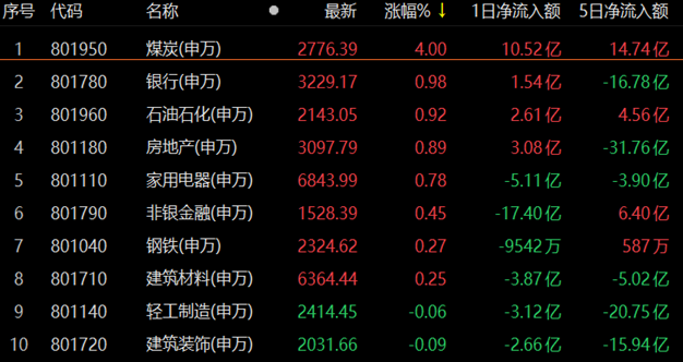 煤炭行業逆市大漲4%