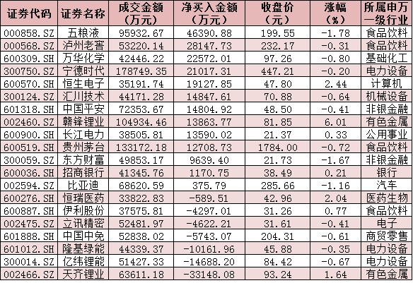 表:今日滬、深股通前十大成交活躍股交易情況: