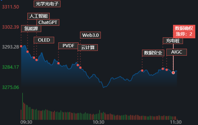 2月15日,早盤滬指開盤后出現回落,之后震蕩回升,A股三大指數早盤收陰。截至上午11:30,上證指數跌0.32%,報3282.61點;深證成指和創業板指跌幅分別為0.18%和0.50%;滬深兩市成交額合計5583.9億元。總體來看,A股市場個股漲少跌多,漲跌停方面,有32只個股漲停,跌停股1只。