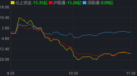 從資金面來看,2月15日上午,北上資金凈賣出金額達15.35億元,其中,滬股通凈買入-15.26億元,深股通凈買入-0.09億元。