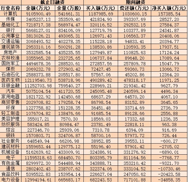 表:2月15日申萬(wàn)一級(jí)行業(yè)兩融交易情況: