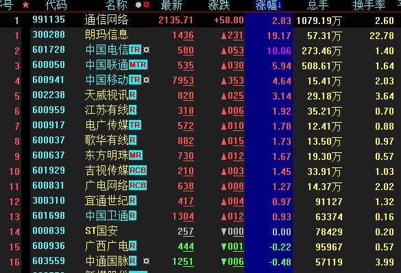具體看,截至2月16日上午收盤,通信網(wǎng)絡(luò)漲幅居首達(dá)2.83%。其中,朗瑪信息20CM漲停。值得關(guān)注的是,三大通信運(yùn)營(yíng)商聯(lián)袂走高。中國(guó)電信漲停,中國(guó)聯(lián)通漲幅達(dá)5.94%,中國(guó)移動(dòng)漲幅近5%。