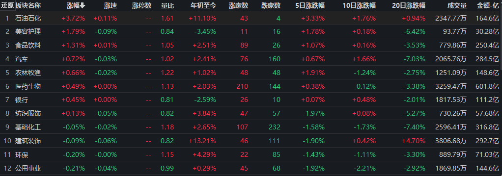 石油石化行業漲超3%