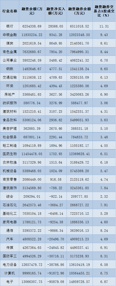 表:5月23日申萬一級行業(yè)兩融交易情況: