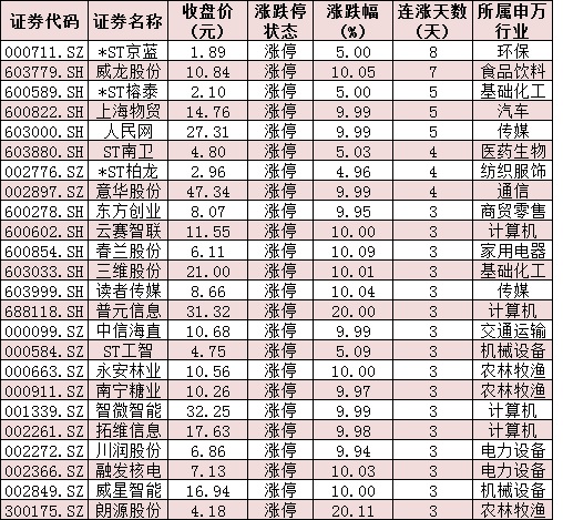 表:連續上漲3日且今日收盤漲停個股情況: