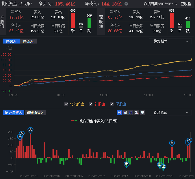 6月16日,三大指數放量上漲。行業板塊和個股漲多跌少,北向資金凈買入逾105億元。本周三大指數均陽線報收,創業板漲勢最強,周漲幅達5.93%;同時,滬指站上30周均線,短期均線呈現多頭排列。有機構分析人士表示,市場暫時擺脫存量博弈狀態,多行業共振合力向上的情況下盈利效應將有改善,中短期多頭有望占據優勢。
