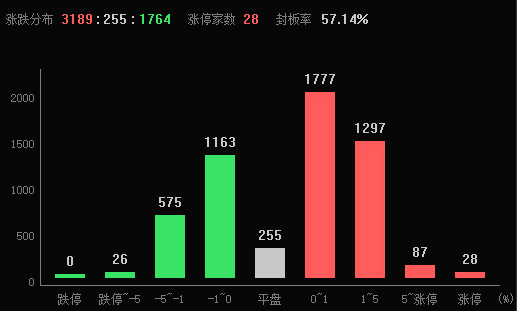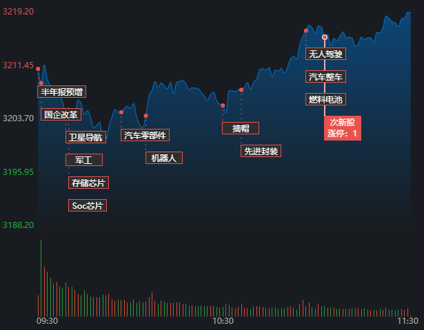 7月11日早盤(pán),A股三大指數(shù)震蕩回升。截至上午11:30,上證指數(shù)漲0.48%,報(bào)3219.20點(diǎn),深證成指和創(chuàng)業(yè)板指漲幅分別為0.57%和0.51%;滬深兩市成交額合計(jì)4670.7億元,較上一交易日同期縮減6.32%。A股市場(chǎng)有3189只個(gè)股上漲,1764只下跌,漲跌停方面,有28只個(gè)股漲停,沒(méi)有跌停。
