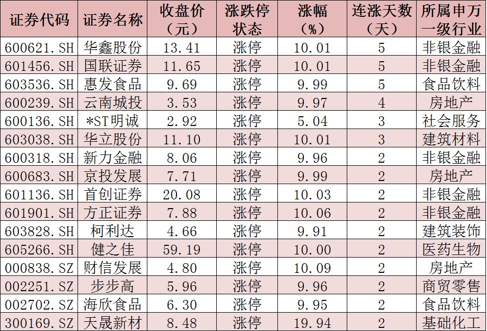 表:連續(xù)上漲2日且今日收盤漲停個(gè)股情況: