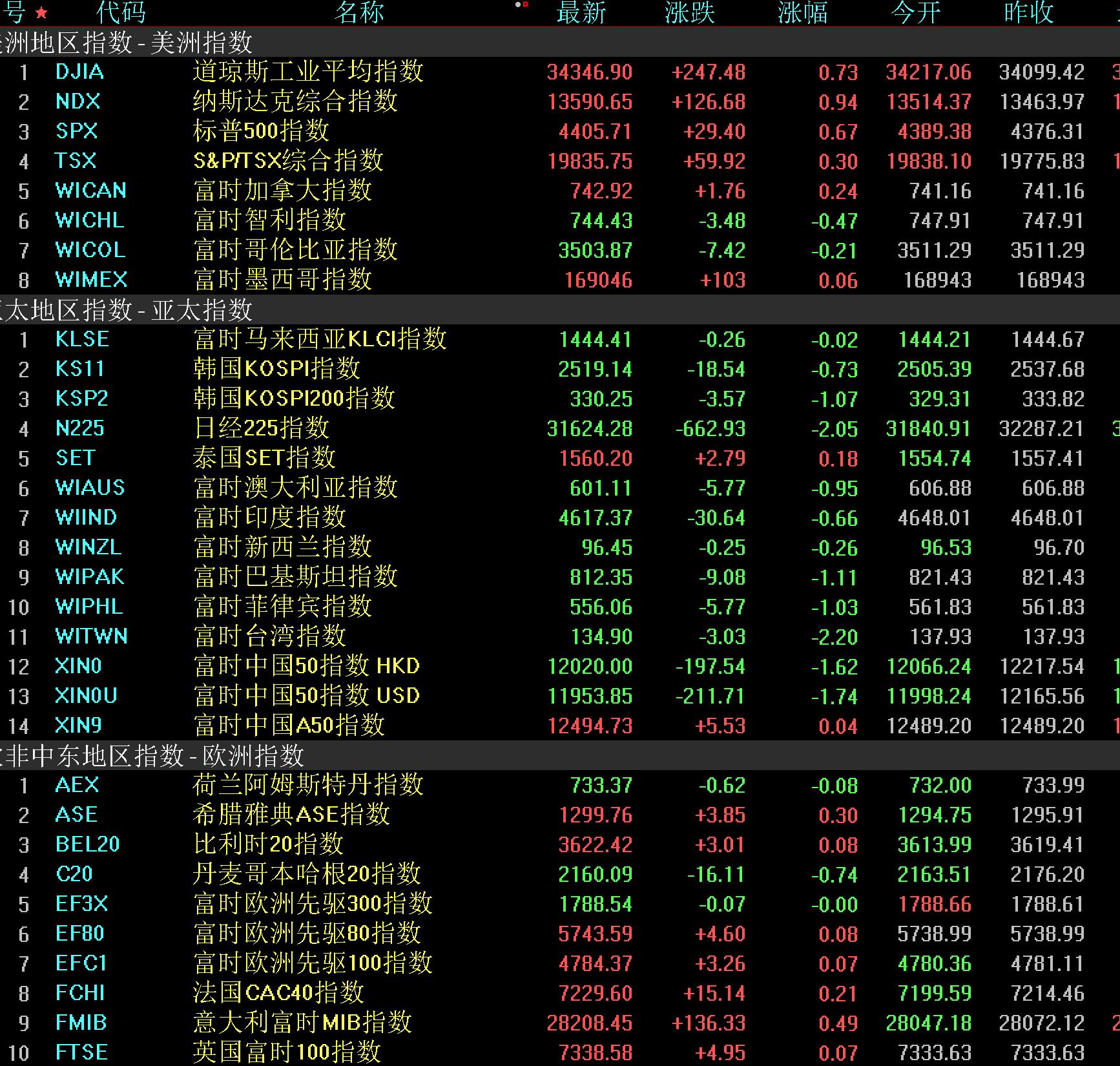 周五,美國三大股指全線收漲,道指漲0.73%報34346.9點,標普500指數漲0.67%報4405.71點,納指漲0.94%報13590.65點。本周,道指跌0.45%,標普500指數漲0.82%,納指漲2.26%。