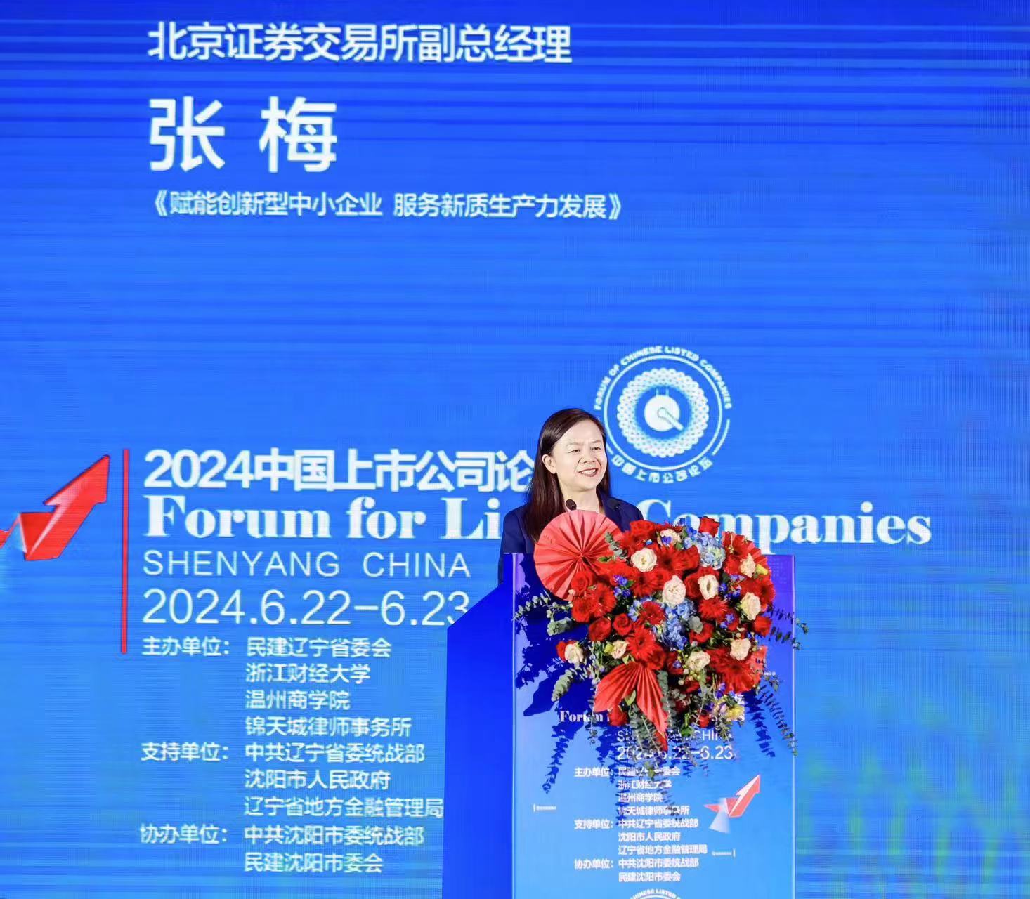 “順應(yīng)新質(zhì)生產(chǎn)力發(fā)展要求的產(chǎn)業(yè)形態(tài)、企業(yè)形態(tài),與高質(zhì)量發(fā)展的創(chuàng)新型中小企業(yè)有高度契合性,尤其是以專精特新為代表的創(chuàng)新型中小企業(yè),在推動(dòng)新質(zhì)生產(chǎn)力發(fā)展中扮演重要角色。”6月22日,由民建遼寧省委會(huì)、浙江財(cái)經(jīng)大學(xué)、溫州商學(xué)院、錦天城律師事務(wù)所共同主辦的“2024中國(guó)上市公司論壇”在沈陽(yáng)市舉行,北交所副總經(jīng)理張梅在論壇上進(jìn)行主旨演講時(shí)表示。