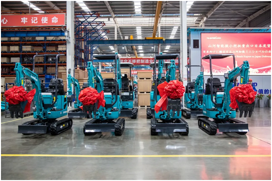 山河智能的微挖披紅掛彩準(zhǔn)備前往日本