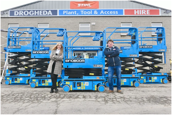 愛爾蘭Drogheda設(shè)備租賃公司的員工們與星邦智能剛到貨的新款設(shè)備合影