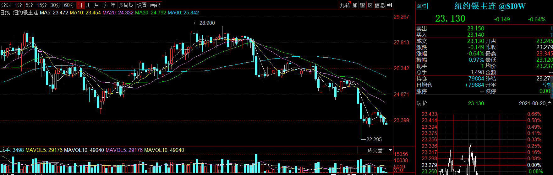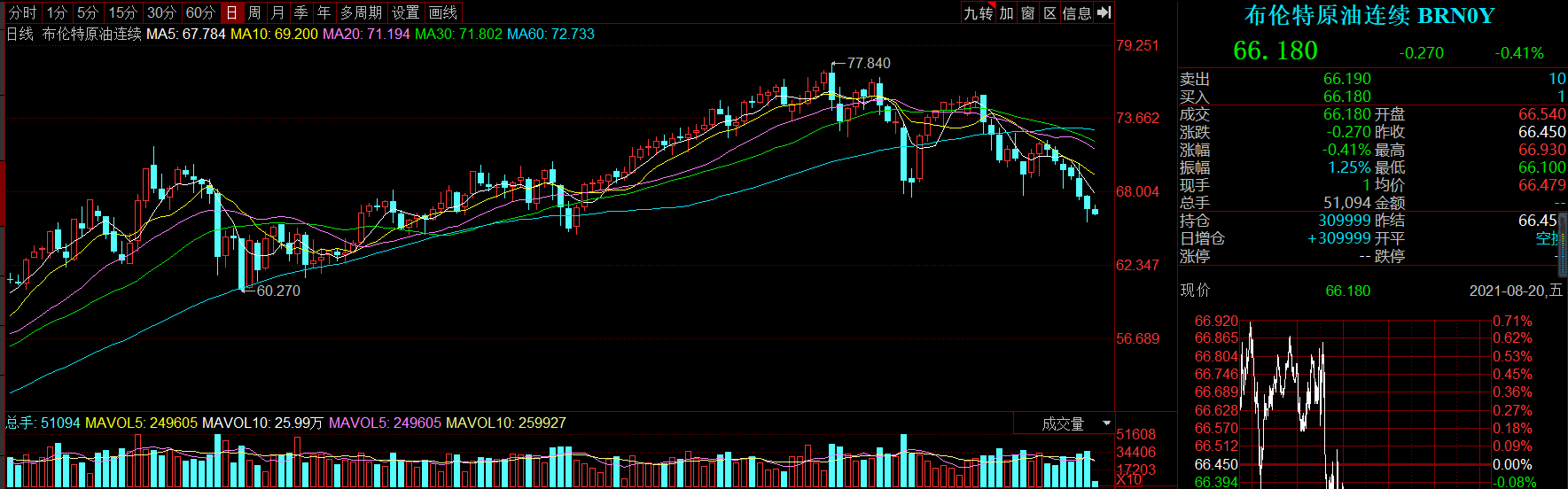 圖為:截至北京時間8月20日17:30部分大宗商品價格走勢圖