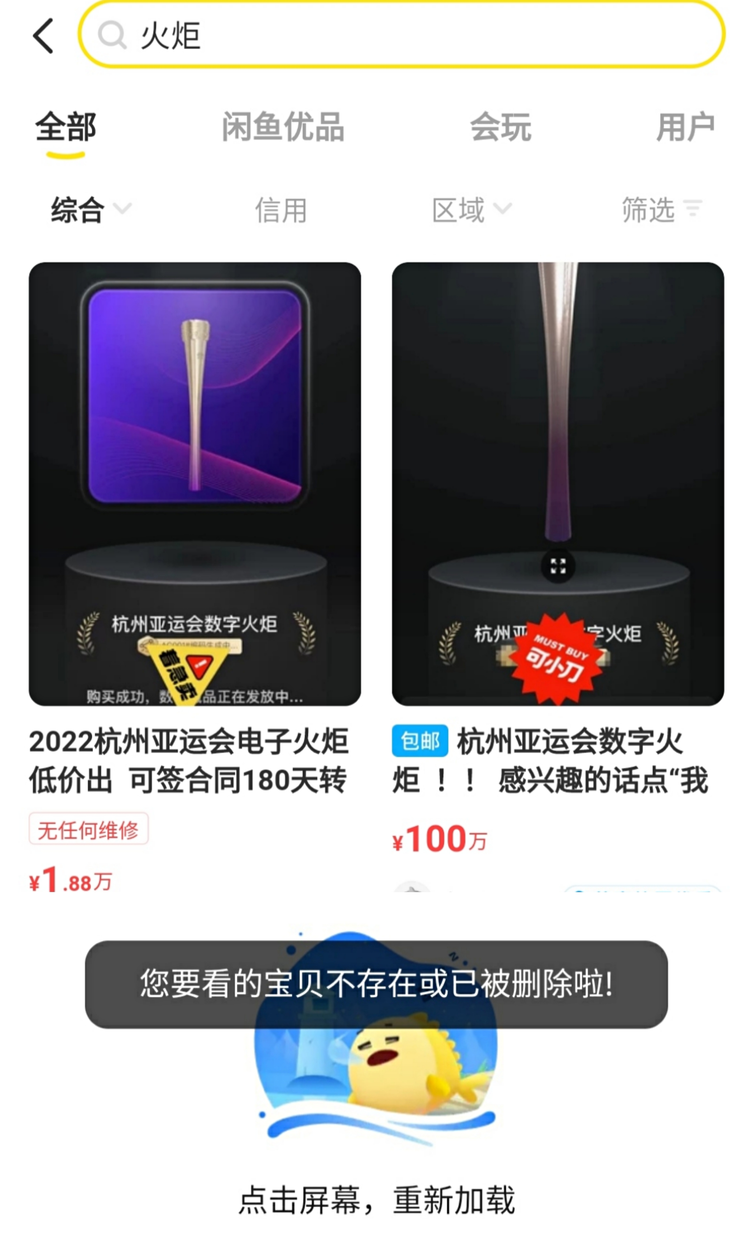不過記者也觀察到,二手電商平臺對此類信息管控很嚴格,某條“數字火炬”NFT商品自發布后,大概過半小時就下架了。