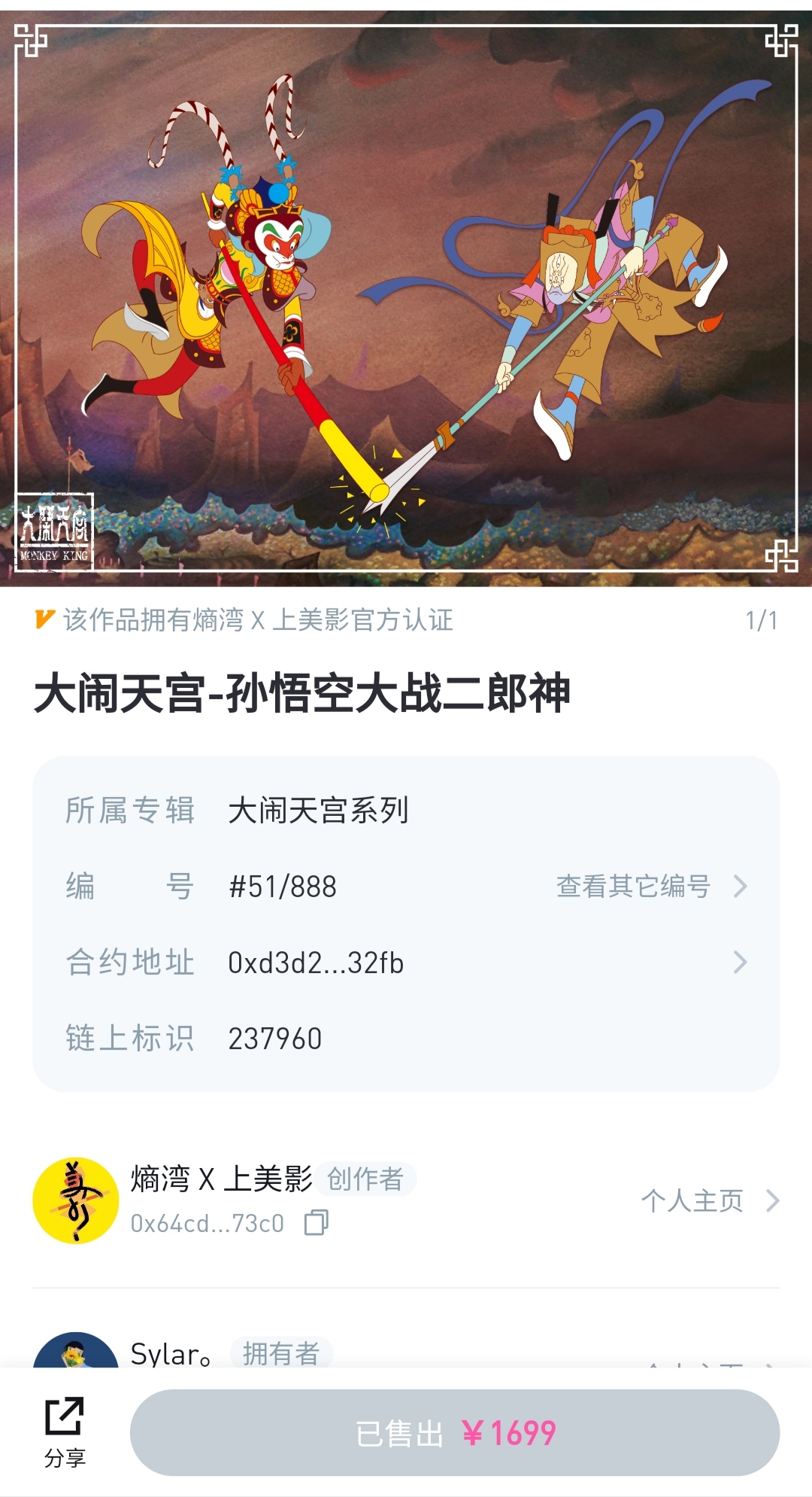 NFT譯為“非同質化通證”,每件作品一經NFT化都具有獨一無二的身份,所有權只能被一位買家擁有。所有權記錄在區塊鏈上,保證真實可驗,不用擔心買到贗品,也解決了盜版問題。