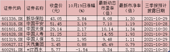 具體來看,10月19日,6只保險股實(shí)現(xiàn)不同程度的上漲,其中,新華保險漲幅居首,達(dá)到3.84%,中國平安大漲3.19%,股價重返50元以上,報收51.45元,中國太保、中國人壽等兩只個股漲幅也均在2%以上。