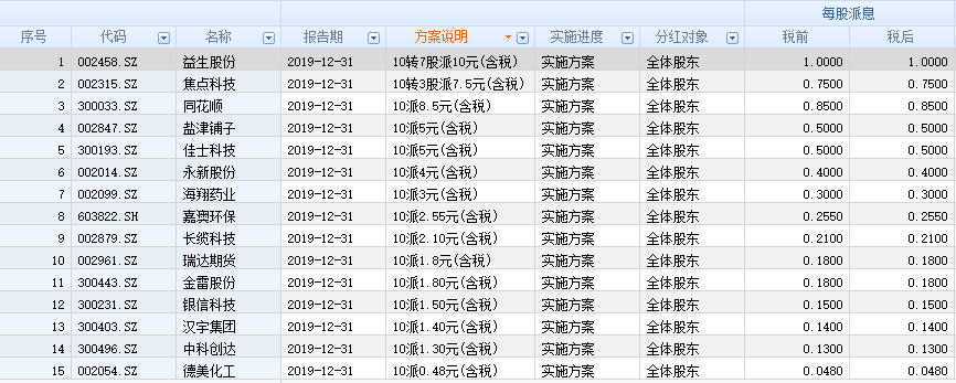已披露2019年年報公司分紅信息一覽: