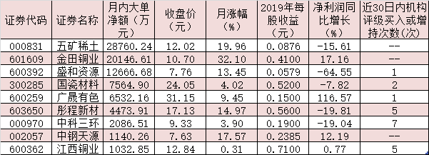 受漲價因素提振,5月份以來,稀土永磁板塊表現較為活躍,38只成份股股價實現上漲,占比逾七成。金田銅業、五礦稀土、*ST湘電、中鋼天源、彤程新材、久吾高科、盛和資源、阿石創等個股月內股價表現搶眼,累計漲幅均超過10%。