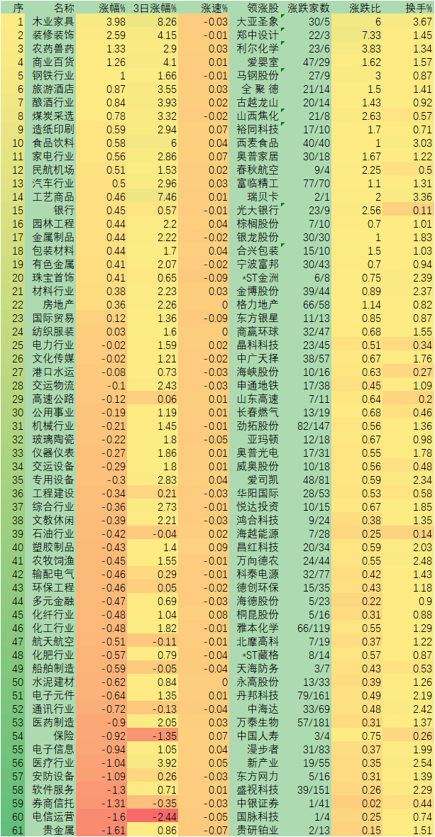 表:周三各行業(yè)市場(chǎng)表現(xiàn)一覽